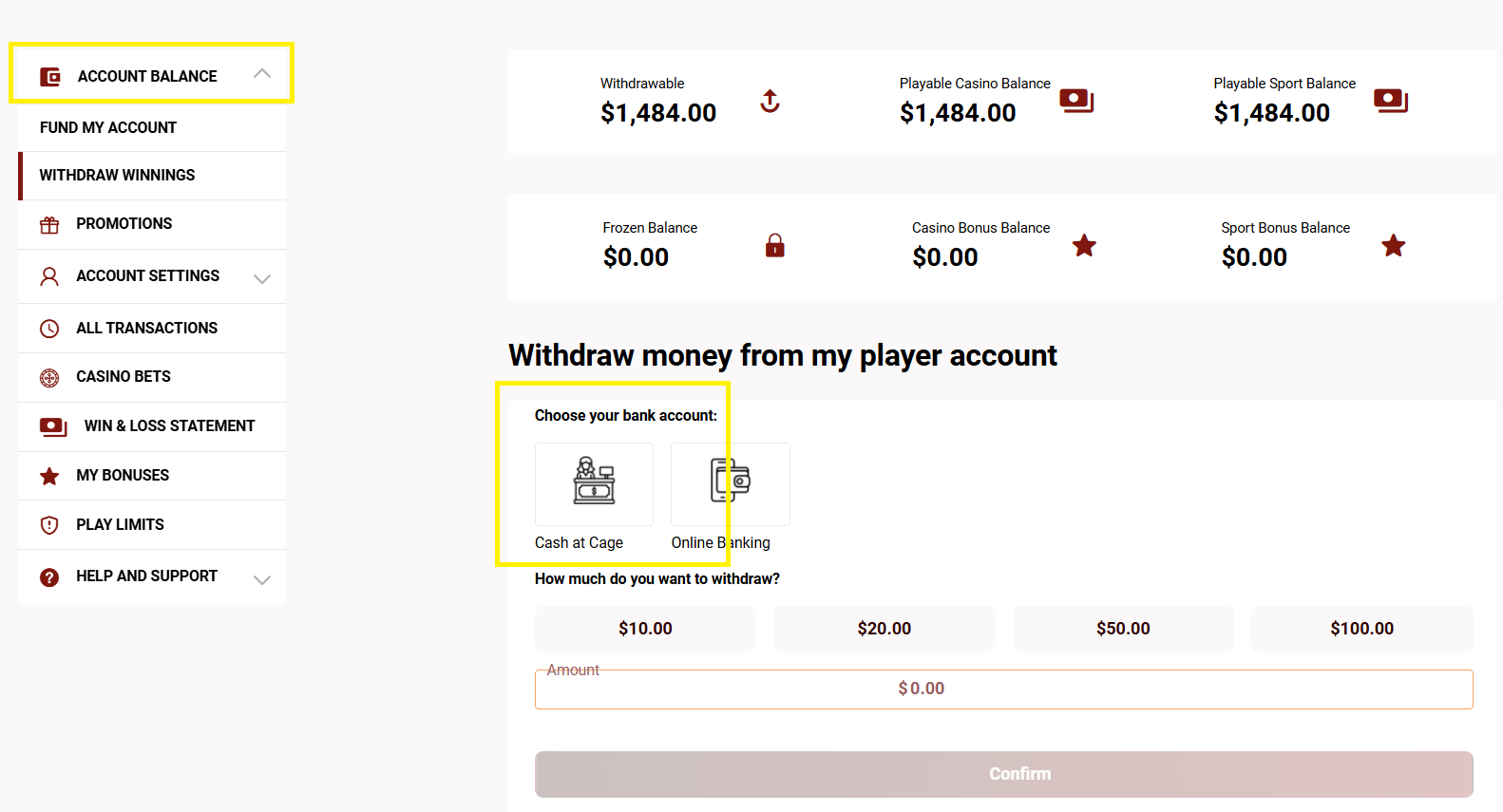 You are welcome to initiate a withdrawal through the Cage. Once approved, an email will be sent to you in order for you to collect your funds in person from the Casino Cage in New Buffalo, Hartford, or Dowagiac. Please do not go to the cage until you have received your email, as our floor staff is unable to manually approve this process.